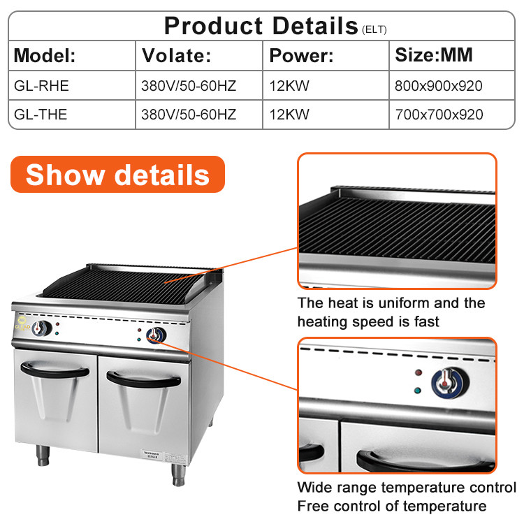 Le modèle GL-RH est une option haut de gamme pour les restaurants et les cuisines commerciales qui nécessitent un équipement de cuisson de haute qualité.ce gril peut chauffer rapidement et rester à une température constante, assurant que vos plats sont cuits à la perfection à chaque fois.